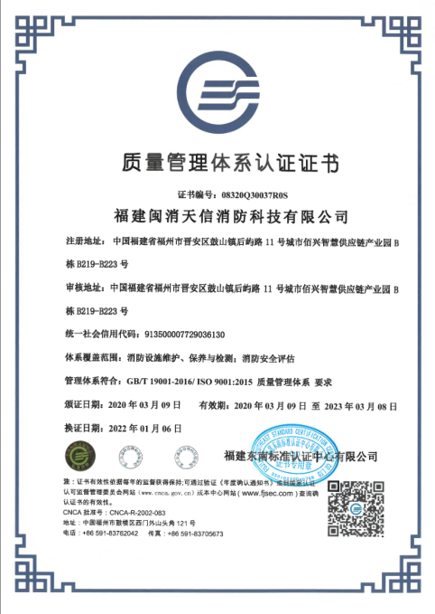 福建闽消天信消防科技有限公司(以下简称闽消天信)成立于2005年3月,是福建省首批消防技术服务机构,现为福建省消防技术服务信息平台四星级企业,是一家集消防检测、消防维保、消防工程、消防安全评估、智慧消防、消防培训、消防技术咨询、消防安全管理等领域为一体的综合性消防技术服务机构。