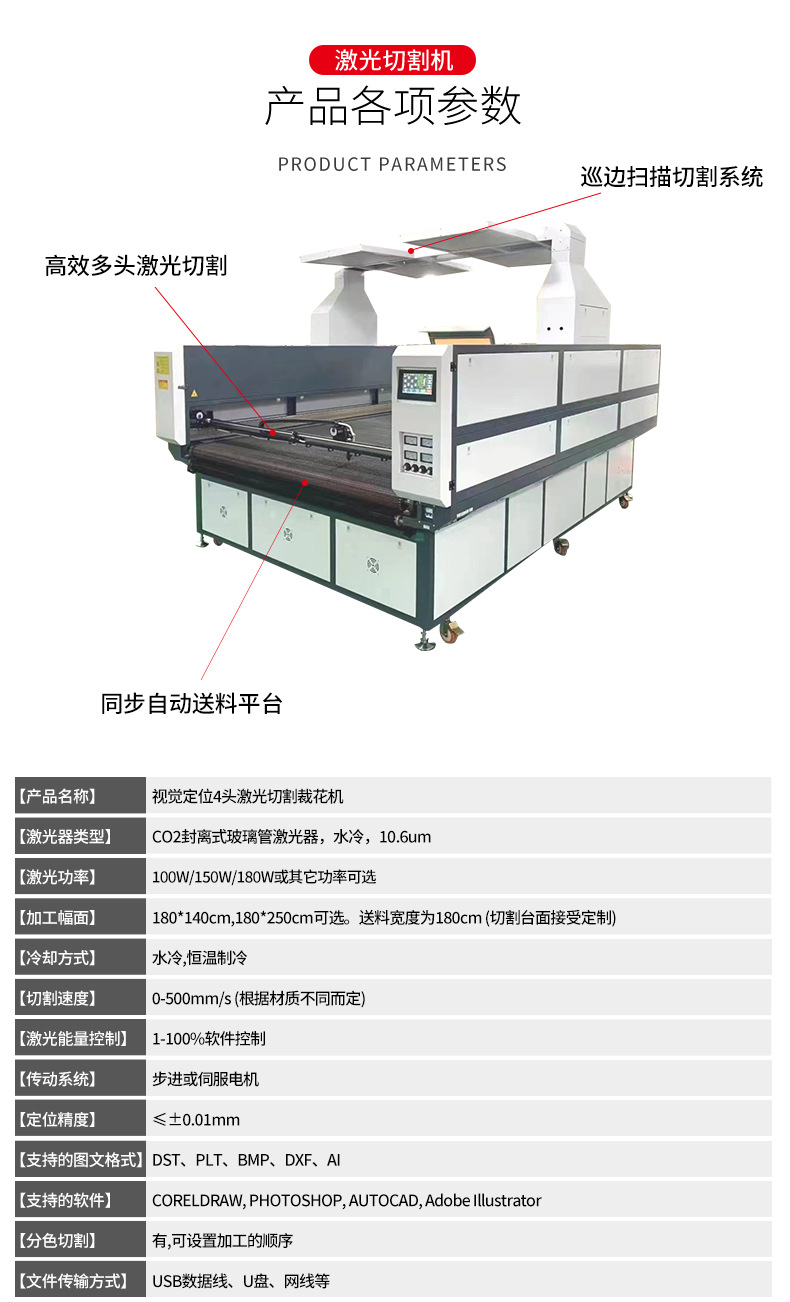 视觉定位图案裁剪窗帘骑行服数码印花布料抓图切割激光寻边切割机