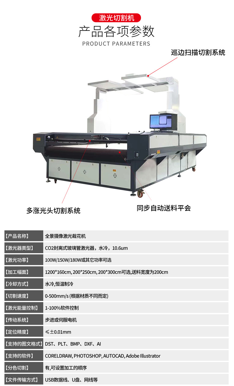 全景摄像大幅面服装布料数码印花毛绒玩具双头异步激光切割裁花机
